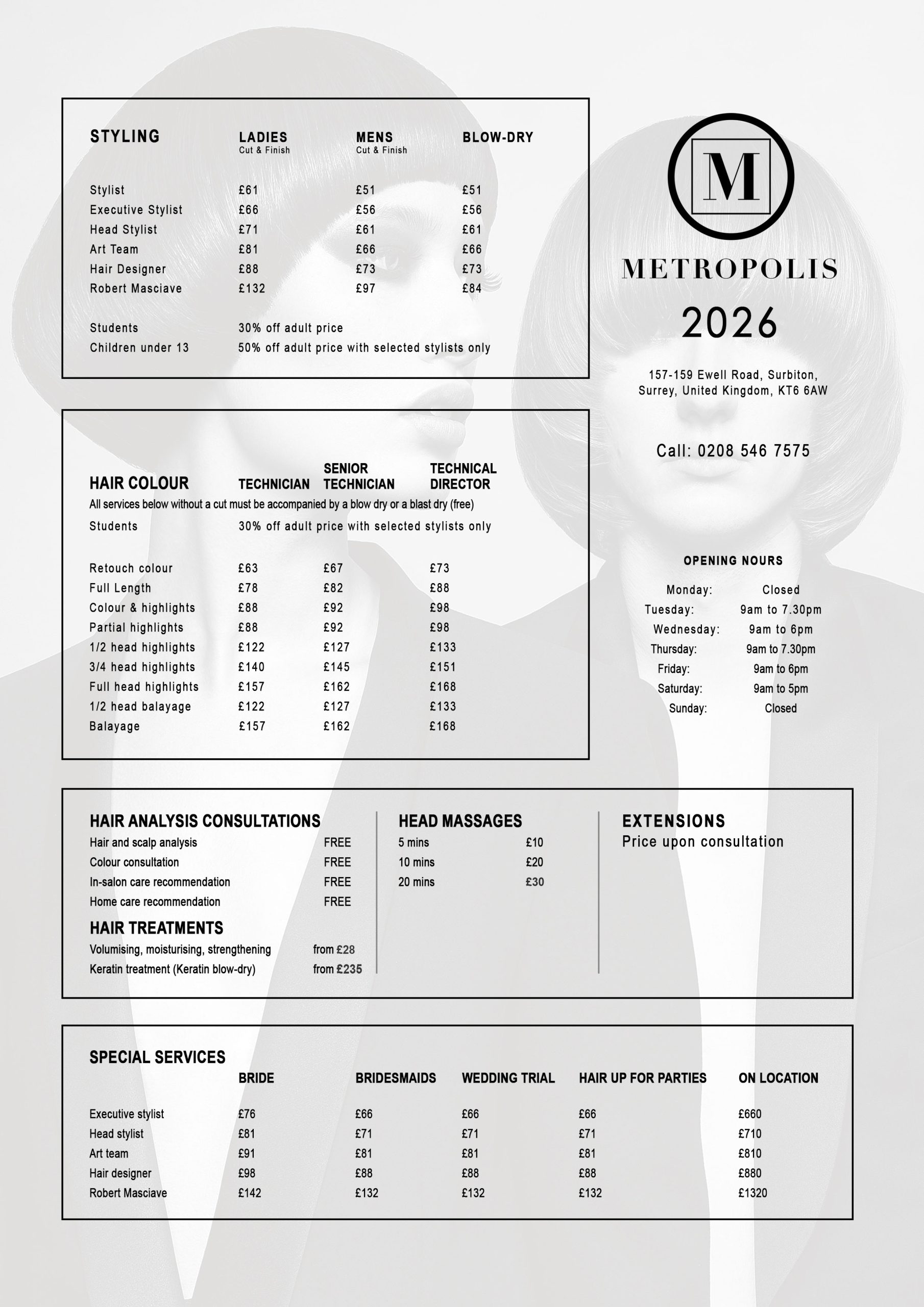 Metropolis is fanatical about giving each client customised style and personal attention. We take the time to give you the perfect hairstyle and colour. You’re guaranteed to feel pampered and happy at every visit and walk out with beautiful hair you can replicate at home.